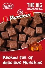 THE BIG CHOCOLATE BOX includes 6 X 4 Finger Milk Chocolate KitKat, 6 x Milk Chocolate Yorkie, 6 x Aero Peppermint Bubbly Bar, 6 x Munchies Tube, 6 x Milk Chocolate KitKat Chunky